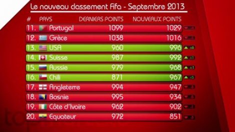 Classement Fifa Du Mois Septembre La Belgique Prend La Premiere Place Le Senegal 25e Mondial La Tunisie Toujours Premiere En Afrique