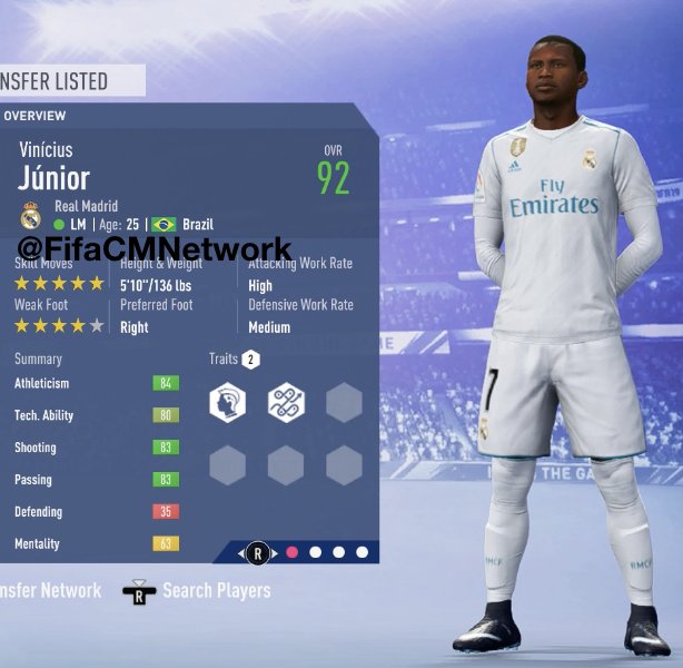Career Mode Network A Twitter Vinicius Junior Age 18 Winger Club Realmadrid Country Brazil Fifa 19 Rating 76 Fifa 19 Potential 92 Strengths Pace Dribbling Finishing Playmaking All Around Star Https T Co Tulmgw0j1w